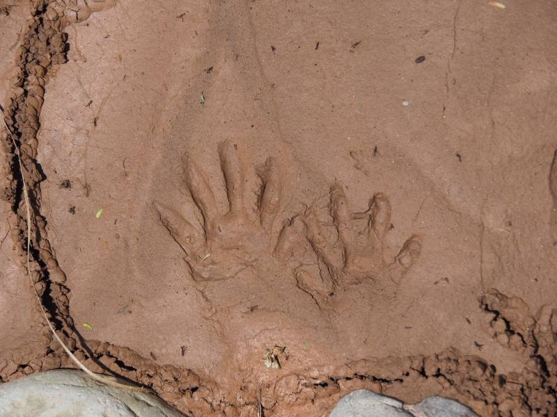 As I was strolling down this nice river, and looking for footmarks that would indicate I wasn’t completely lost, I came upon this strange pair of hands. Now, that’s not jaguar footprint, is it? I suspect monkeys.